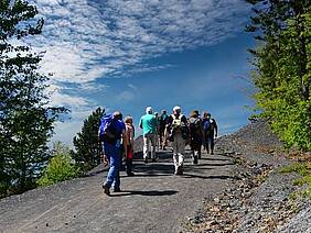 Auf breiten Waldwegen und über schmale Pfade wandern wir am „Hohlenstein“ vorbei zum Hölzerbach. Nach einer kleinen Pause geht es zum Kraftwerk Weiher. Das idyllische Ufer des ehemaligen Absinkweihers, der sich zu einem Biotop entwickelt, lädt ebenfalls zu einer kleinen Rast ein. Mit einer traumhaften Aussicht und 300 Millionen Jahre alten Versteinerungen lockt der „Mount Göttelborn“ (400 m ü. NN), den wir besteigen werden. Auf dem Rückweg führt die Wanderung am „Weißen Riesen“ zurück zum Ausgangspunkt. Einkehrmöglichkeit bei „Martinis“ (wenn geöffnet).